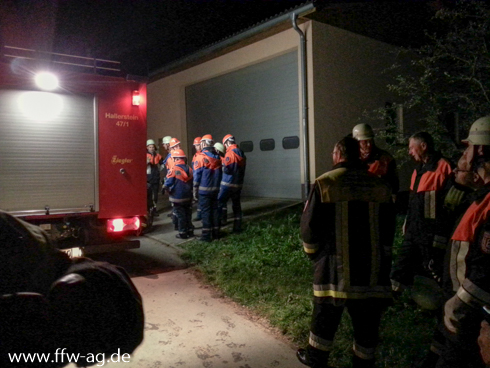 Traditionell üben gemeinsam die Feuerwehren Förmitz und Hallerstein zusammen mit unserer Feuerwehr einmal im Jahr anlässlich der Bayerischen Feuerwehraktionswoche mit einer Gemeinschaftsübung. Angenommenes Brandobjekt war in diesem Jahr die Biogasanlage Schwarz in Völkenreuth. Die Wasserförderung wurde einerseitz über das Hallersteiner wasserführende Fahrzeug sowie über den Dorfteich in Völkenreuth von der Förmitzer Wehr. Diese legte zwei B-Leitungen zum Brandobjekt, von dem eine die Förmitzer selber mit einem Verteiler und drei Strahlrohren abschloss und eine übernahm unsere Albertsreuth-Götzmannsgrüner Wehr. Insgesamt wurde das Objekt mit acht C-Leitungen bekämpft. Unter den Augen von Einsatzleiter war der Hallersteiner Kommandant Volker Schödel, der unter den Augen von Kreisbrandmeister Gerhard Schmidt den Einsatz souverän managte.